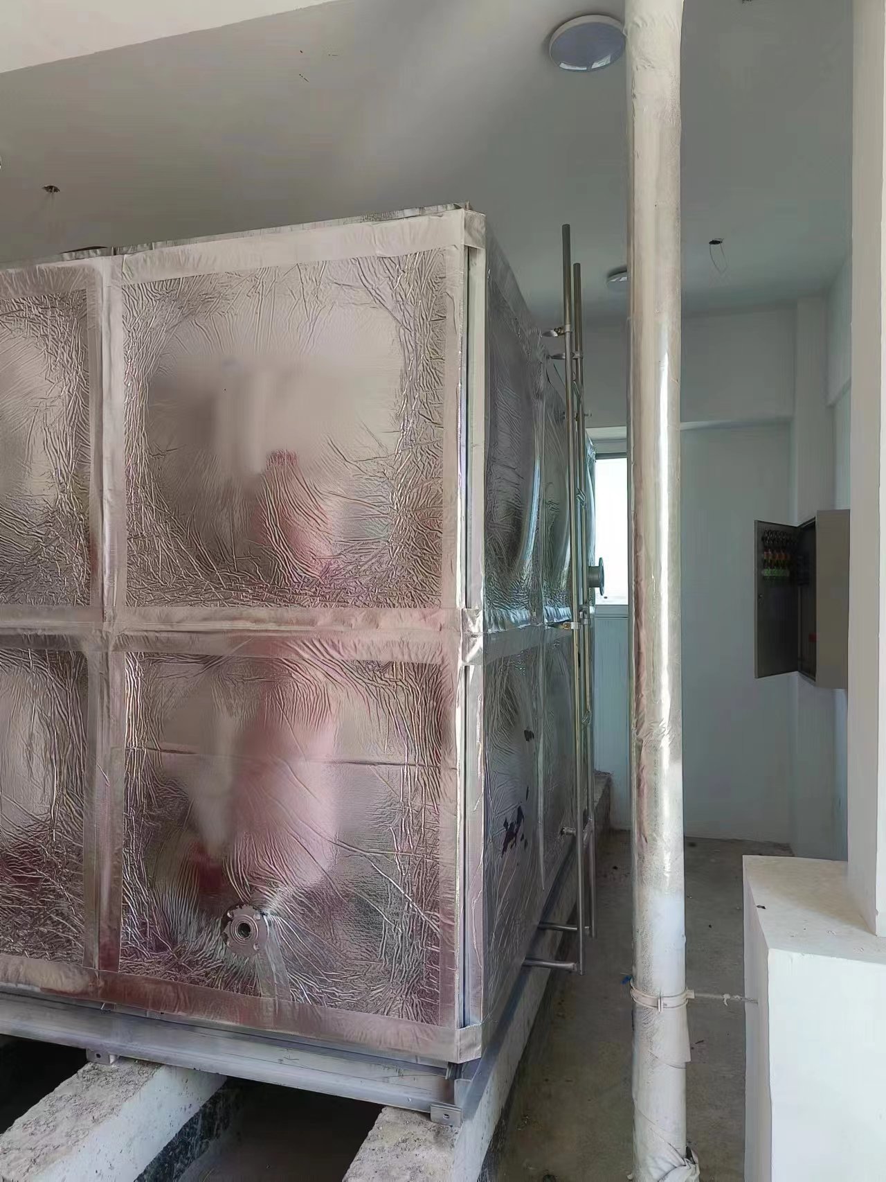 鍍鋅橡塑鋁箔布保溫水箱現場圖:客戶根據自己實際要求設置的條形基礎,安裝工人到達現場就可以直接焊接槽鋼底座,不耽誤工期。騰翔公司具有專業的安裝團隊,保障了安裝水箱的質量和效率。鍍鋅橡塑鋁箔布保溫水箱是適合用在室內的保溫水箱,保溫效果好,價格適中。